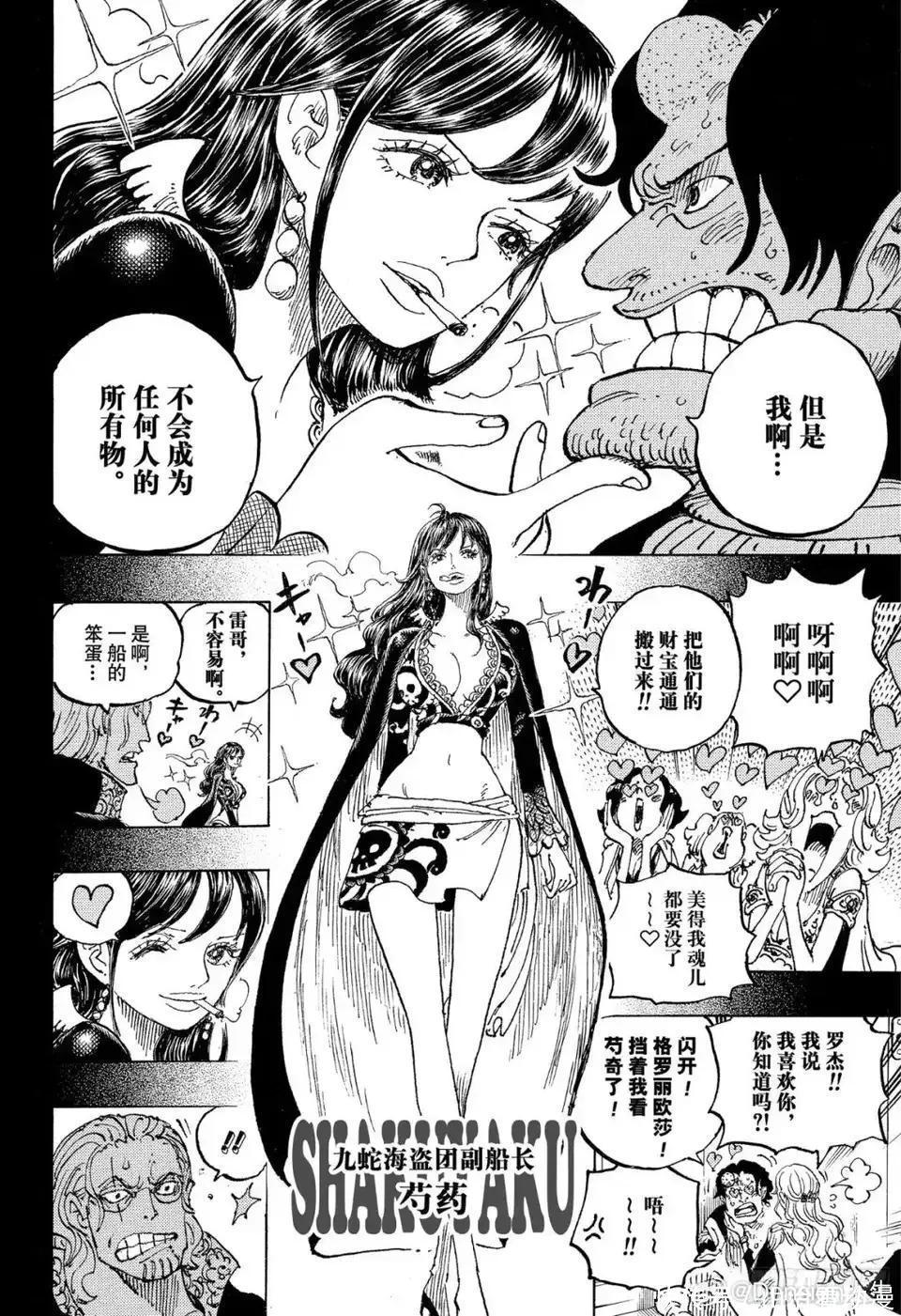 海贼王漫画剧情正在巨人族篇章,草帽一伙已经进入艾尔巴夫,他们正在艾尔巴夫冒险。罗宾最想见的人就是萨乌罗盈珑操盘,她从贝加庞克那里得知萨乌罗没死,如今进入艾尔巴夫,罗宾就马上去见到萨乌罗。草帽一伙还参观了学校和图书馆,见到了一群巨人族的小孩子,弗兰奇去参观世界树。